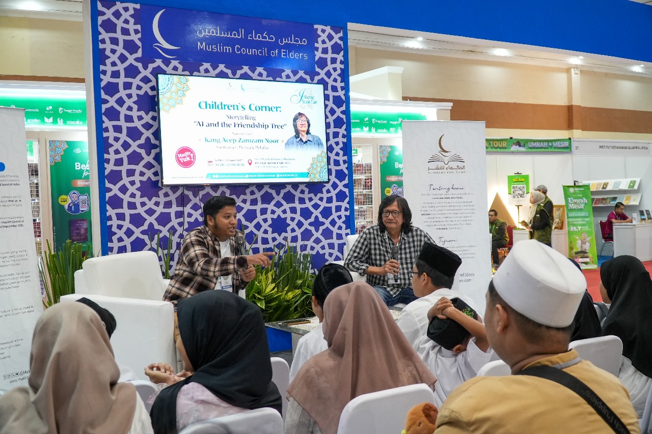 Stan Majelis Hukama Muslimin (MHM) hari ini, Sabtu (21/6/2025) dipenuhi anak-anak dan remaja. Mereka tampak antusias dalam sessi Children's Corner dengan tema menarik, 'Srorrytelling: AI and the Friendship Tree'.