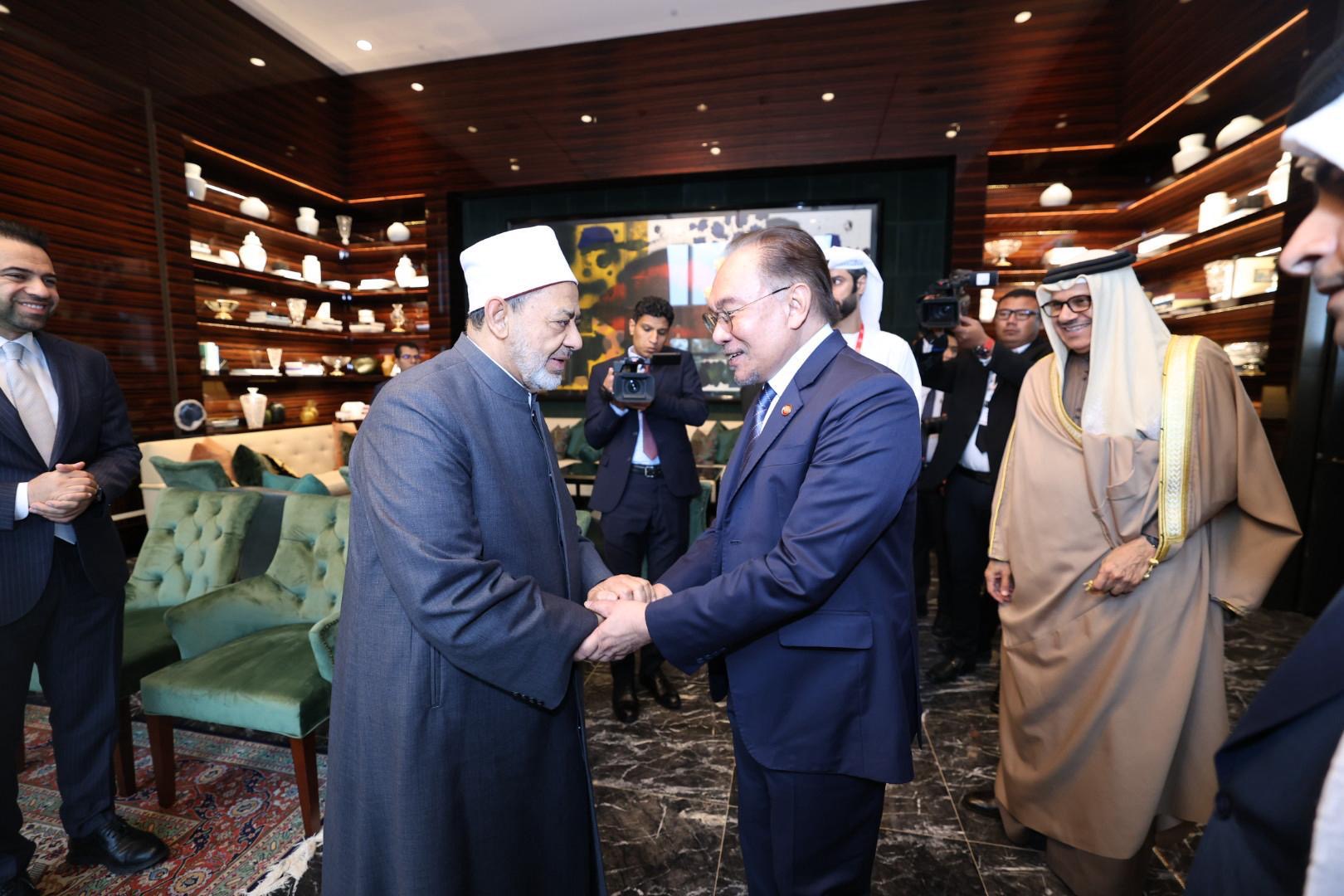 Baca selanjutnya>Grand Syekh Al Azhar yang juga Ketua Majelis Hukama Muslimin (MHM), Imam Akbar Prof. Dr. Ahmed Al-Tayeb, menerima kunjungan Anwar Ibrahim, Perdana Menteri Malaysia, hari ini di kediamannya di Kerajaan Bahrain, Kamis (20/2/2025). Pertemuan kedua tokoh ini untuk menjajaki peluang kerja sama bilateral yang lebih baik.