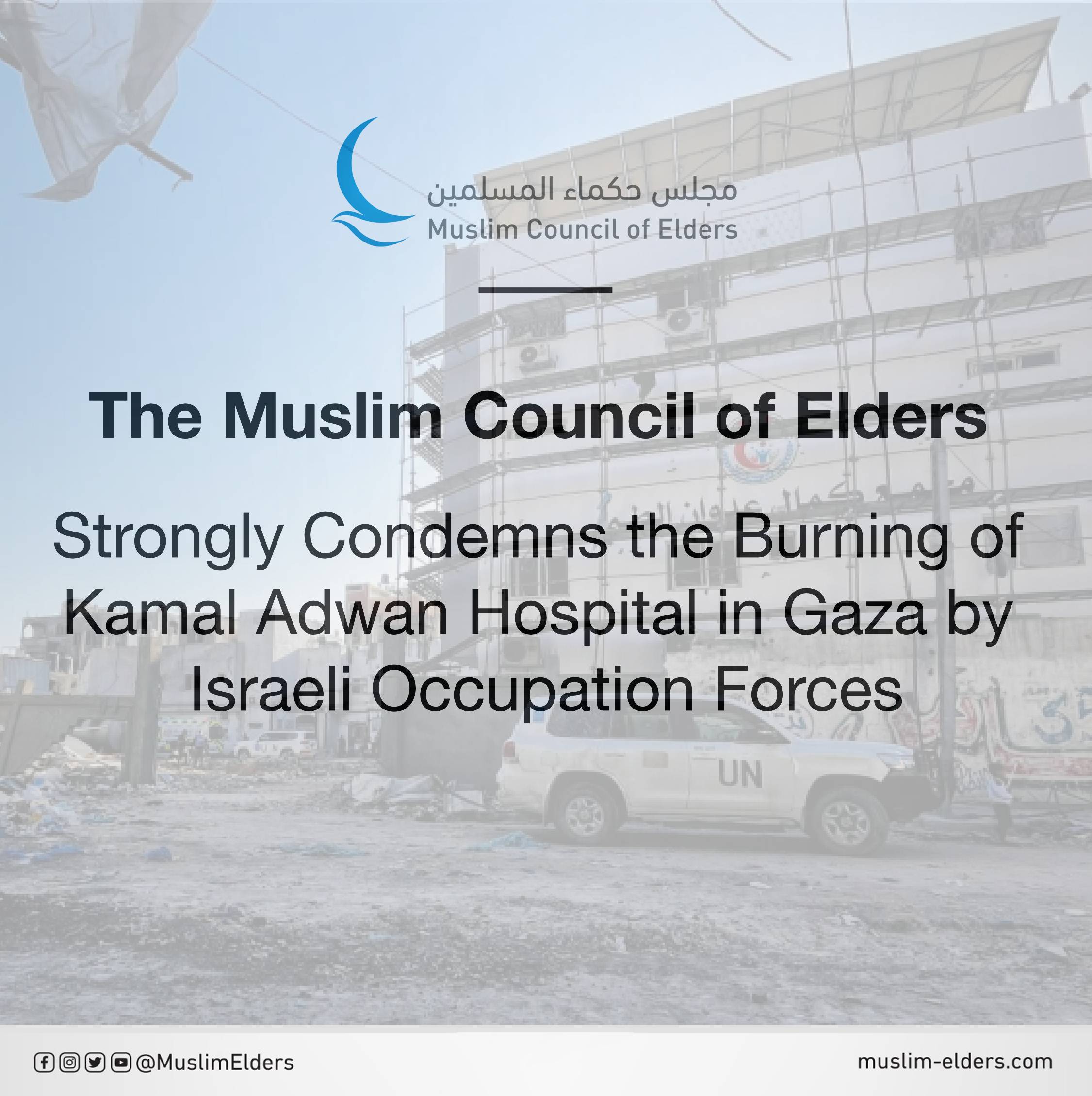 Baca selanjutnya>Majelis Hukama Muslimin (MHM), di bawah kepemimpinan Grand Syekh Al Azhar, Imam Akbar Prof. Dr. Ahmed Al-Tayeb, mengutuk keras pembakaran Rumah Sakit Kamal Adwan di Gaza utara oleh pasukan pendudukan Israel. Aksi itu memaksa pasien dan staf medis untuk mengungsi.