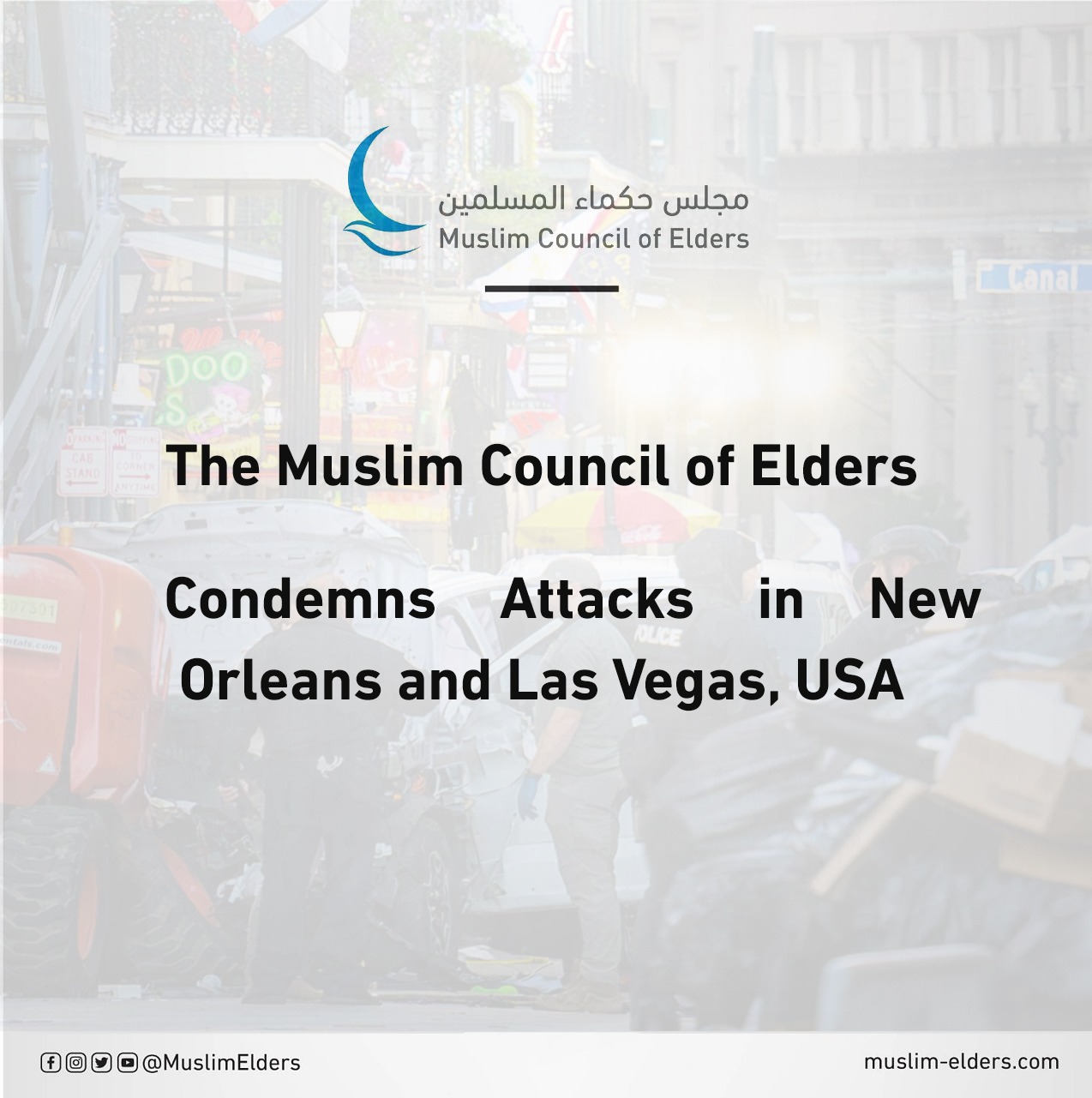 Baca selanjutnya>Majelis Hukama Muslimin (MHM) yang dipimpin Grand Syekh Al Azhar, Imam Akbar Prof. Dr. Ahmed Al-Tayeb, mengutuk serangan penabrakan mobil yang terjadi di jalanan New Orleans dan ledakan di luar sebuah hotel di Las Vegas, Amerika Serikat. Dua peristiwa ini mengakibatkan banyak kematian dan cedera.