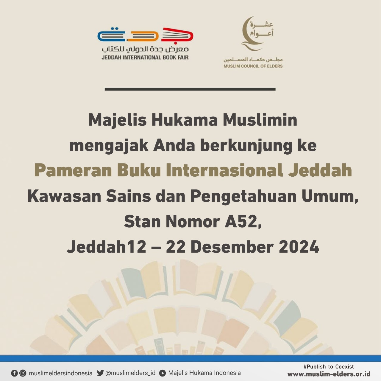 Baca selanjutnya>Majelis Hukama Muslimin (MHM) untuk kedua kali menyiapkan paviliun khusus di Pameran Buku Internasional Jeddah 2024. Pameran ini akan dibuka mulai 12 Desember 2024 di Jeddah, Arab Saudi. Partisipasi MHM didorong oleh misi menumbuhkan perdamaian, menanamkan nilai-nilai dialog dan toleransi, serta meningkatkan kerja sama dan koeksistensi.
