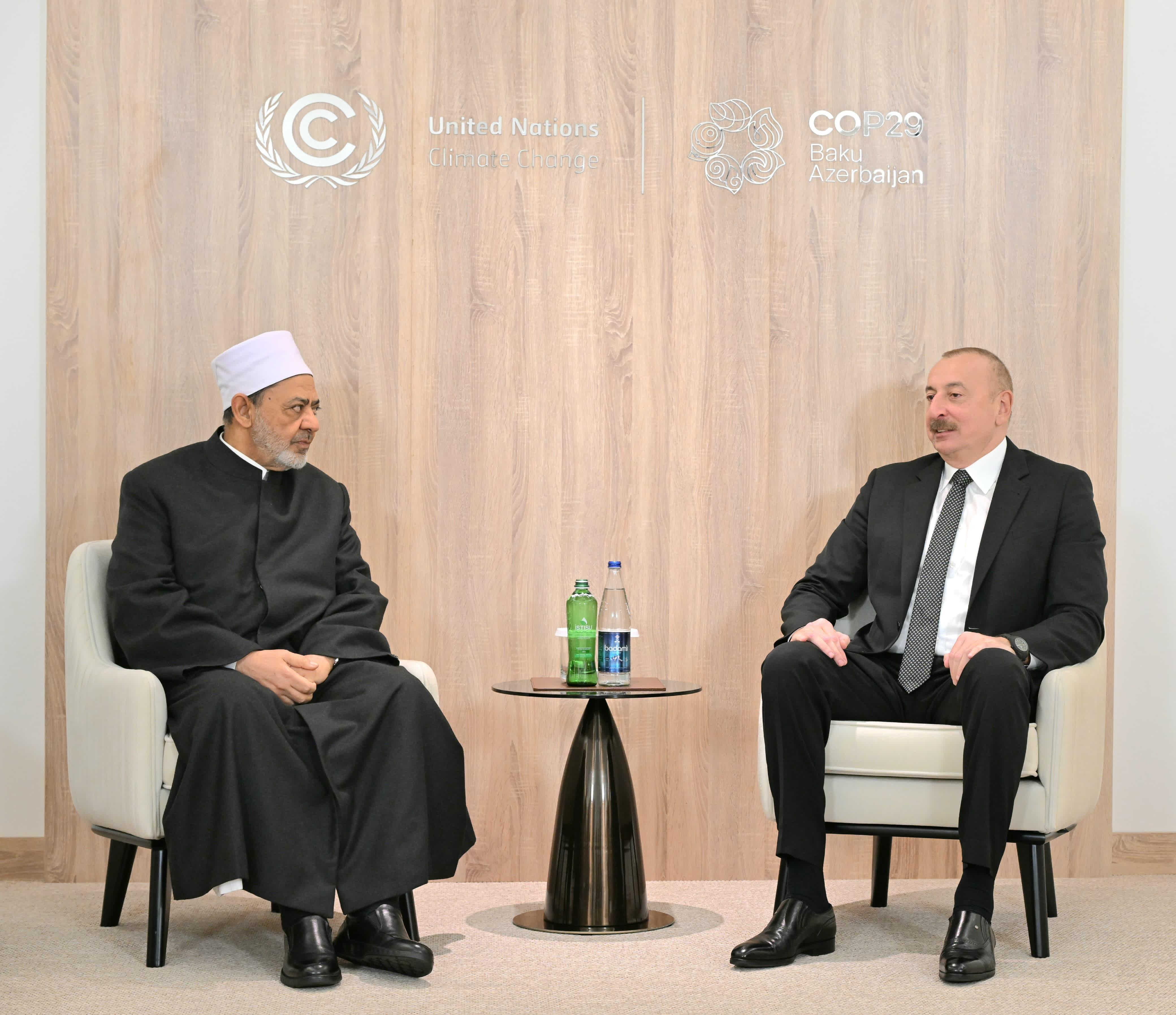 Baca selanjutnya>Grand Syekh Al Azhar yang juga Ketua Majelis Hukama Muslimin (MHM), Imam Akbar Prof. Dr. Ahmed Al-Tayeb, bertemu dengan Presiden Republik Azerbaijan, Ilham Aliyev, setibanya di Baku, Senin (11/11/2024). Imam Akbar berkunjung ke Baku untuk menghadiri sesi ke-29 Konferensi Para Pihak pada Konvensi Kerangka Kerja PBB tentang Perubahan Iklim (COP29).