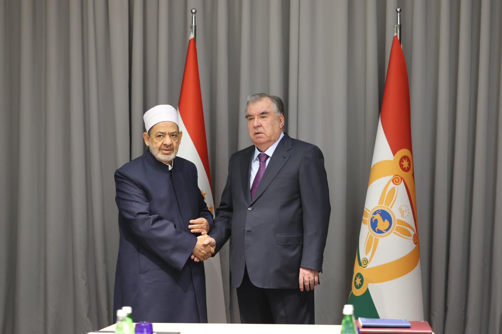 Baca selanjutnya>Grand Syekh Al Azhar yang juga Ketua Majelis Hukama Muslimin (MHM), Imam Akbar Prof. Dr. Ahmed Al-Tayeb, bertemu Presiden Tajikistan, Emomali Rahmon, di Baku, Azerbaijan, Selasa (12/11/2024). Pertemuan berlangsung di sela-sela keikutsertaan mereka dalam sesi ke-29 Konvensi Kerangka Kerja PBB tentang Perubahan Iklim (COP29).