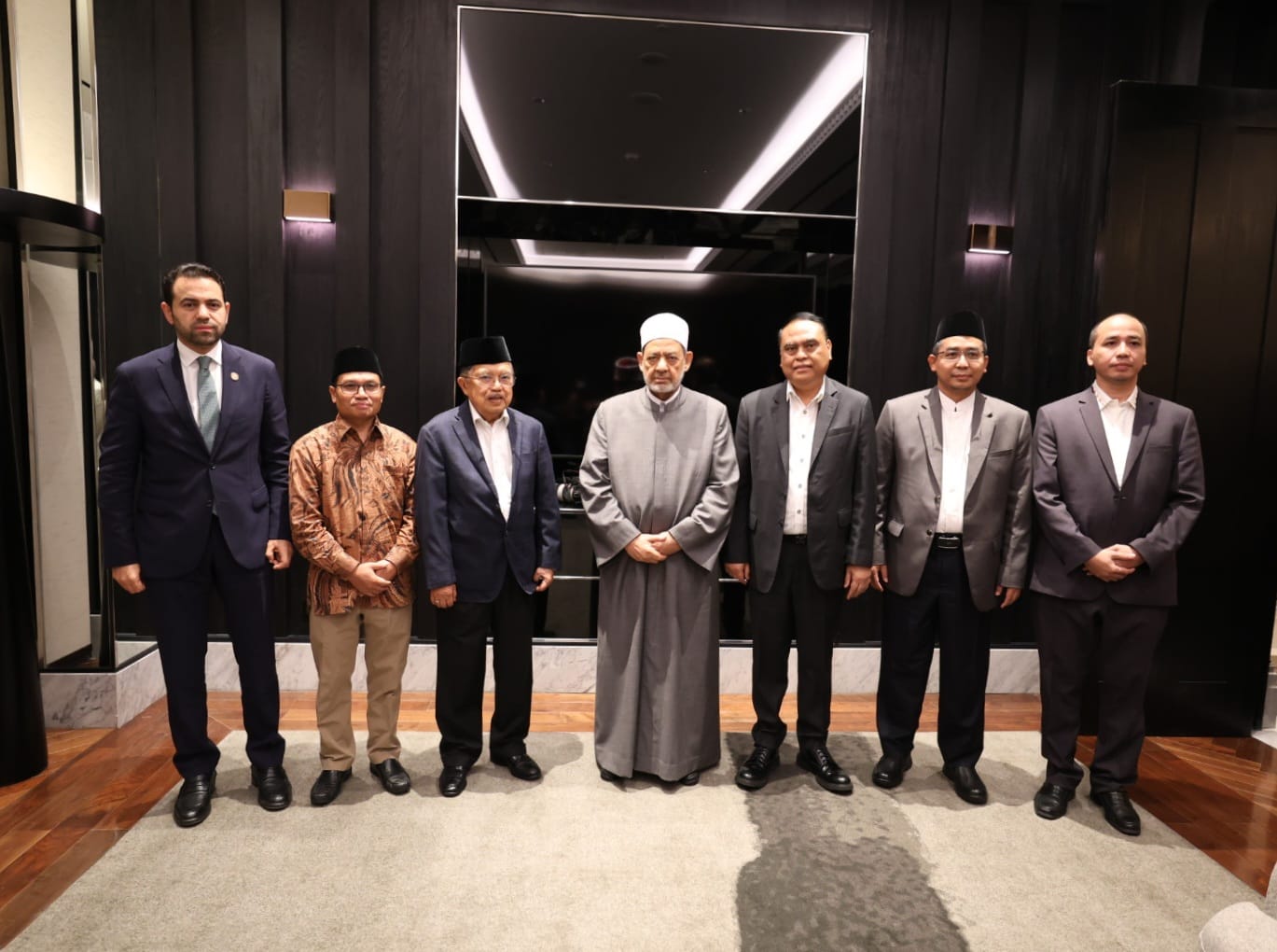 Grand Syekh Al Azhar yang juga Ketua Majelis Hukama Muslimin (MHM), Imam Akbar Profesor Ahmed Al-Tayeb, menerima Dr. Omar Habtoor Al Darei, Ketua Otoritas Umum Urusan Islam, Wakaf dan Zakat, Uni Emirat Arab (UEA), dan Dr. Khalifa Al Dhaheri, Rektor Universitas Kemanusiaan Mohamed Bin Zayed.