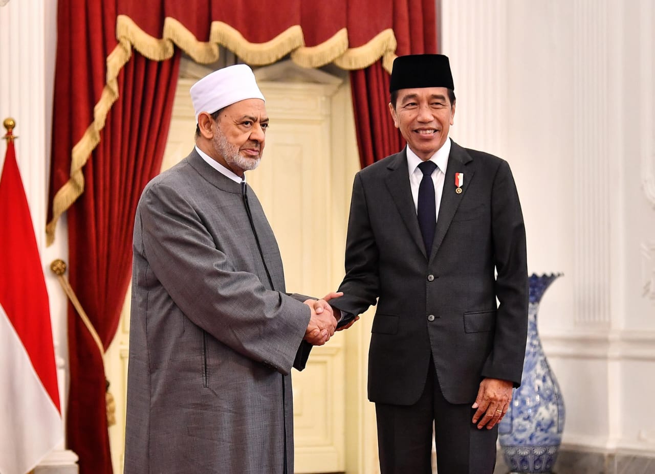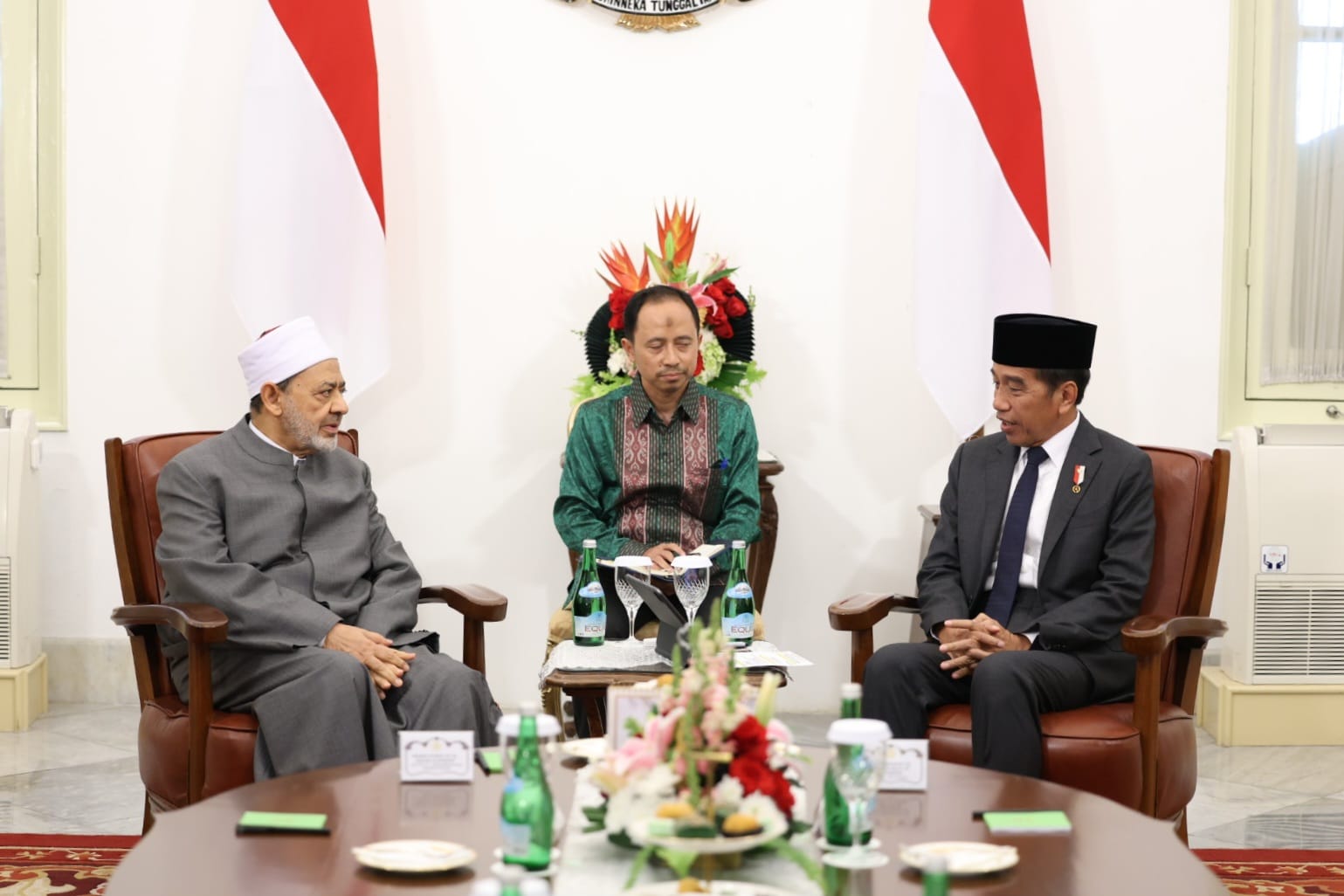 Baca selanjutnya>Presiden Republik Indonesia (RI) Joko Widodo, dan Grand Syekh Al Azhar yang juga Ketua Majelis Hukama Muslimin (MHM) Imam Akbar Prof. Dr. Ahmed Al-Tayeb, bertemu di Istana Merdeka, Jakarta, Selasa (9/7/2024). Pertemuan ini membahas upaya meningkatkan kerja sama di bidang penyebaran dan pemajuan nilai-nilai dialog, toleransi, dan hidup berdampingan antarmanusia (koeksistensi).