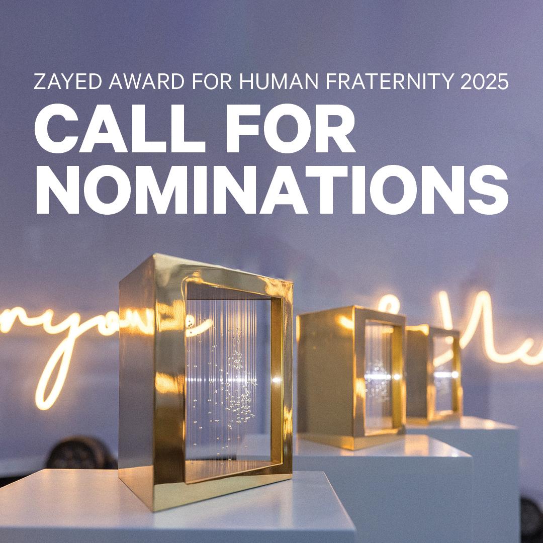 Baca selanjutnya>Pencalonan penerima penghargaan global dan independen Zayed Award for Human Fraternity 2025 hari ini resmi dibuka. Ini merupakan edisi keenam Zayed Award for Human Fraternity.