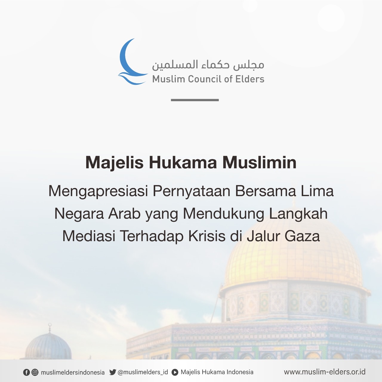 Baca selanjutnya>Majelis Hukama Muslimin (MHM), yang diketuai Grand Syekh Al Azhar, Imam Akbar Dr. Ahmed Al-Tayeb, mengapresiasi pernyataan bersama lima negara Arab (the Arab Quintet Statement) yang dikeluarkan Uni Emirat Arab, Arab Saudi, Qatar, Yordania, dan Mesir, Selasa (4/6/2024).