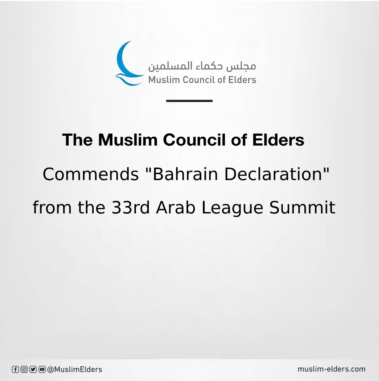 Baca selanjutnya>Majelis Hukama Muslimin (MHM), di bawah kepemimpinan Grand Syekh Al Azhar, Imam Akbar Dr. Ahmed Al-Tayeb, mengapresiasi Deklarasi Bahrain yang dikeluarkan oleh KTT Arab ke-33. KTT ini berlangsung di ibu kota Kerajaan Bahrain, Manama.