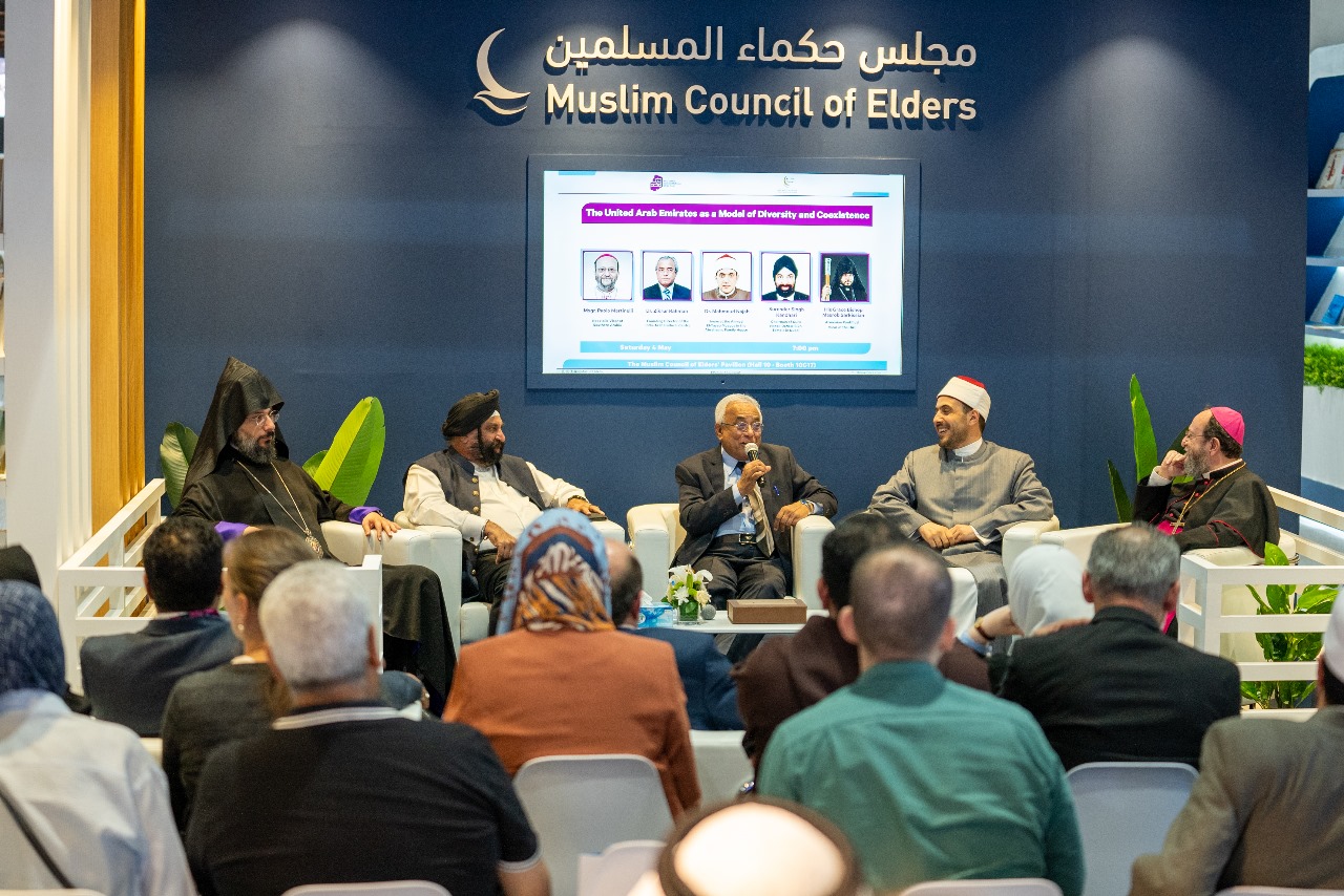 Baca selanjutnya>Stan Majelis Hukama Muslimin (MHM) pada Pameran Buku Internasional Abu Dhabi 2024 menyelenggarakan seminar bertajuk "Uni Emirat Arab sebagai Model Keberagaman dan Hidup Berdampingan (Koeksistensi)", Senin (6/5/2024). Hadir sejumlah narasumber, yaitu: 1) Monsinyur Paolo Martinelli (Vikaris Apostolik Arab Selatan), Dr. Zikrur Rahman (Direktur Pendiri dari Pusat Kebudayaan Arab India), Dr. Mahmoud Najah (Imam di Masjid Ahmed El-Tayeb di Rumah Keluarga Abraham), Surender Singh Kandhari (Ketua Kuil Guru Nanak Darbar Sikh di Dubai), dan Uskup Mesrob Sarikissian (Vikaris Armenia Uni Emirat Arab).