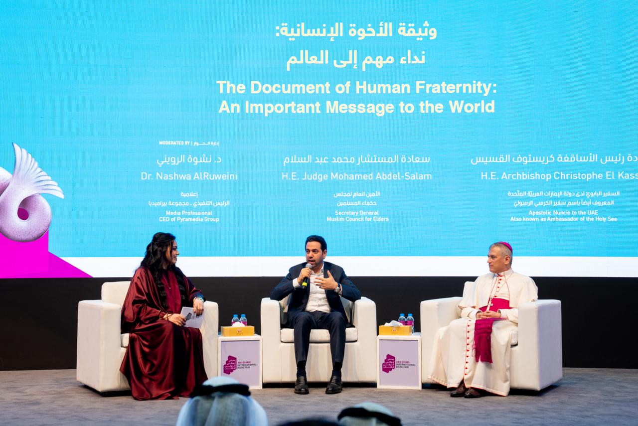 Baca selanjutnya>Pameran Buku Internasional Abu Dhabi menyelenggarakan diskusi panel bertajuk "Dokumen Persaudaraan Manusia: Pesan Penting bagi Dunia", Senin (6/5/2024). Diskusi ini menampilkan Sekjen Majelis Hukama Muslimin (MHM) Konselor Mohamed Abdelsalam dan Nuncio Apostolik untuk Uni Emirat Arab, Uskup Christophe Zakhia El-Kassis, sebagai narasumber. Tampil selaku moderator, Dr. Nashwa Al Ruwaini.