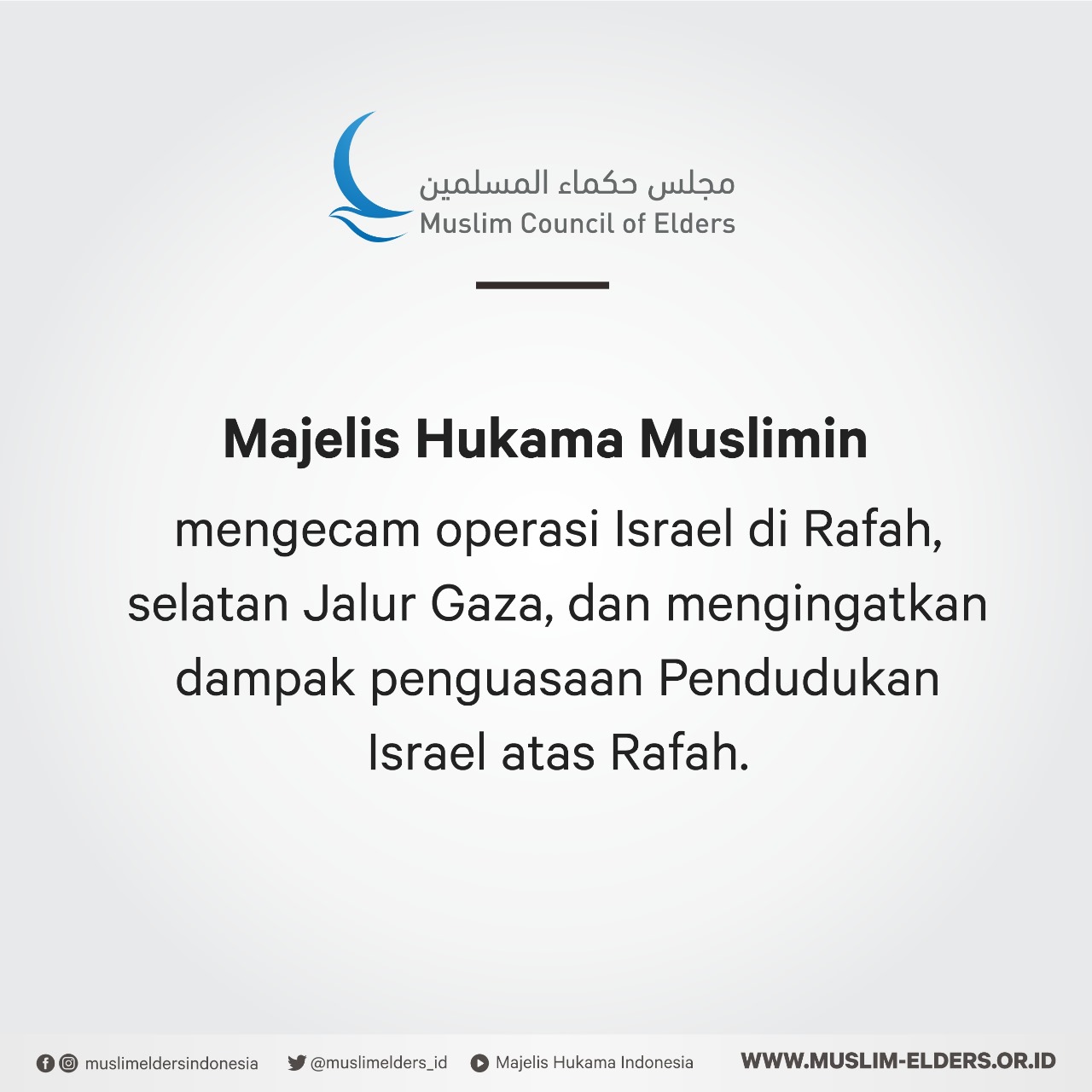 Baca selanjutnya>Majelis Hukama Muslimin (MHM), di bawah kepemimpinan Grand Syekh Al Azhar, Imam Akbar Dr. Ahmed Al-Tayeb, mengecam tindakan yang dilakukan pasukan pendudukan Israel di kota Rafah, selatan Jalur Gaza.