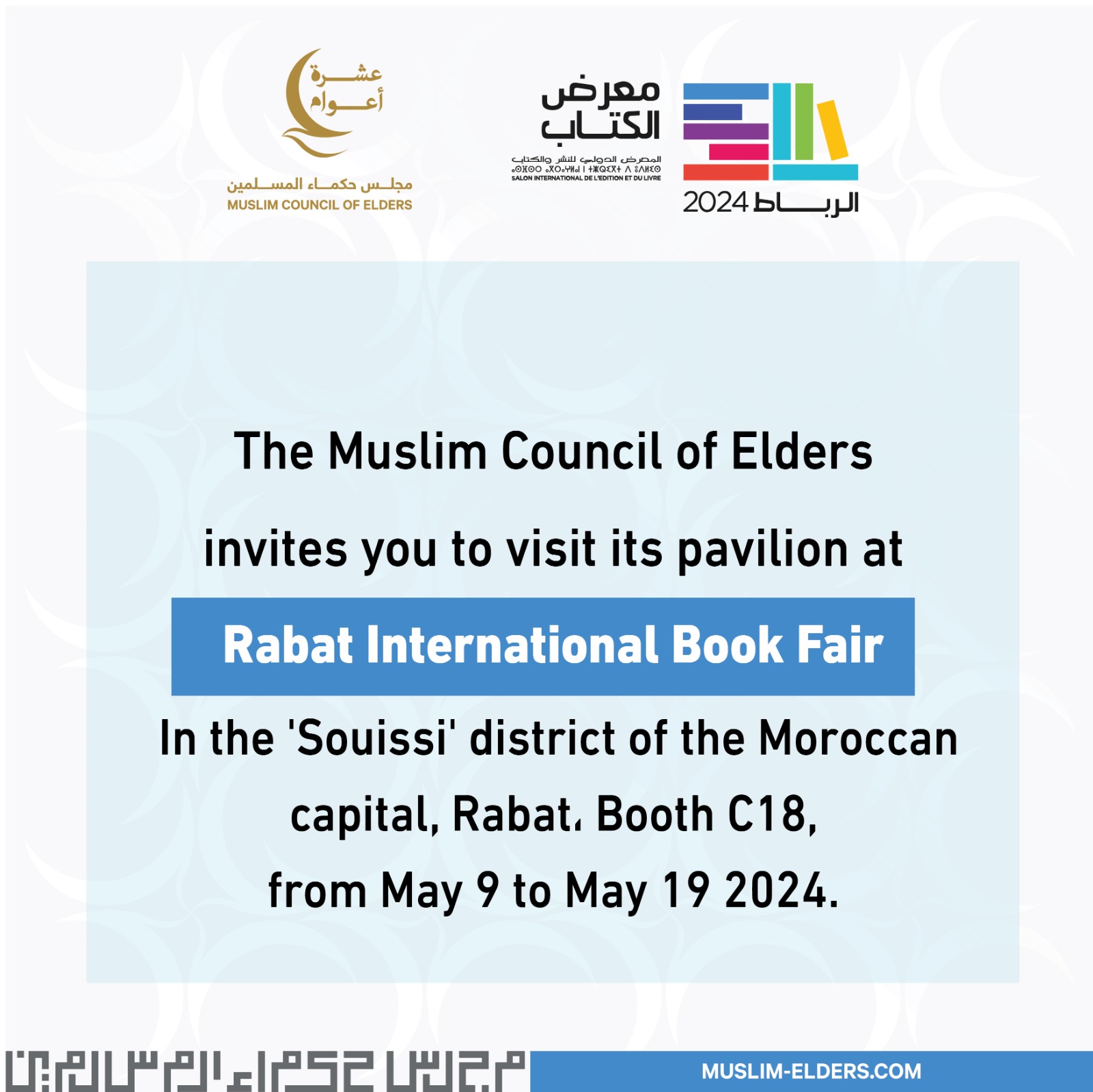Pada Pameran Buku Internasional Rabat ke-29, Majelis Hukama Muslimin (MHM) menyelenggarakan seminar budaya bertajuk “Prospek Pelestarian Warisan Teologi Islam di Era Modern melalui Lembaga Ilmiah.” Seminar ini menampilkan narasumber, Direktur Pusat Penelitian Perdamaian Al-Hokama, Dr. Samir Boudinar dan peneliti di Kantor Kebangkitan Warisan Al-Azhar, Dr. Mohamed Jamal.