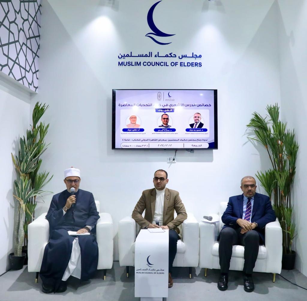 Baca selanjutnya>Stan Majelis Hukama Muslimin (MHM) pada Pameran Buku Internasional Kairo 2024 menyelenggarakan seminar bertajuk "Karakteristik Ajaran Asy'ari dalam Menghadapi Tantangan Kontemporer". Seminar tersebut menghadirkan Prof. Dr. Nazir Ayad, Sekretaris Jenderal Akademi Riset Islam, dan Dr. Samir Boudinar, Direktur Pusat Penelitian Perdamaian Al Hokama, sebagai narasumber. Tampil sebagai moderator, Dr. Mohammed Gamal, anggota Kantor Kebangkitan Warisan di Al -Azhar.
