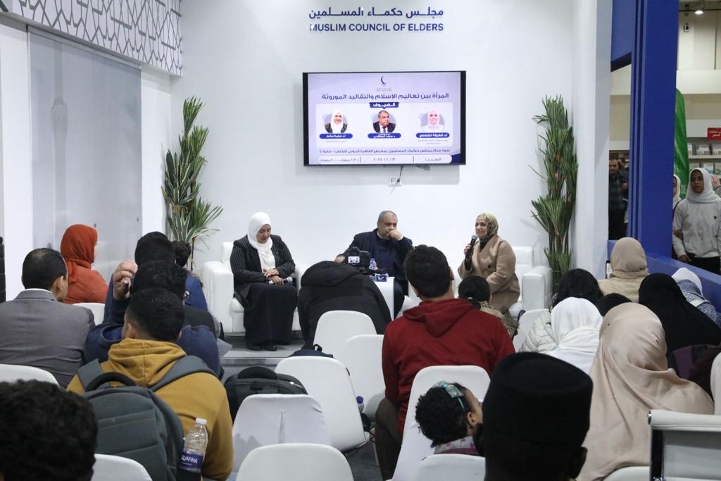 Baca selanjutnya>Paviliun Majelis Hukama Muslimin (MHM) pada Pameran Buku Internasional Kairo 2024 menyelenggarakan seminar bertajuk "Perempuan antara Ajaran Islam dan Tradisi”, Minggu (4/2/2024). Seminar ini menghadirkan Prof. Dr. Shafiqa Al-Shahawi, Dekan Fakultas Islam dan Studi Arab untuk Wanita, dan Prof. Dr. Khadra Salem, Anggota Senat sebagai narasumber. Selaku moderator, Dr. Saad Al-Mat' ani.