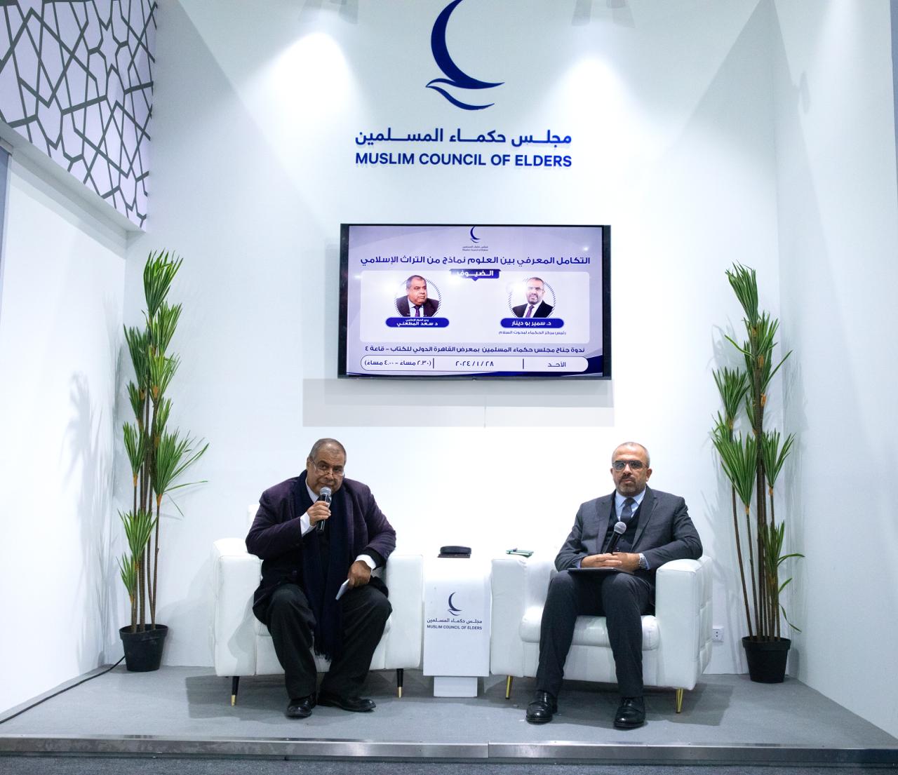 Baca selanjutnya>Salah satu seminar yang diselenggarakan Stan Majelis Hukama Muslimin pada Pameran Buku Internasional Kairo 2024 mengangkat tema "Integrasi Antar Ilmu Pengetahuan: Model dari Warisan Islam." Seminar yang berlangsung Senin (29/1/2024) ini menghadirkan Dr. Samir Boudinar, Direktur Pusat Penelitian Perdamaian Al Hokama, sebagai narasumber. Seminar dimoderatori oleh Saad Al-Mat'ani.
