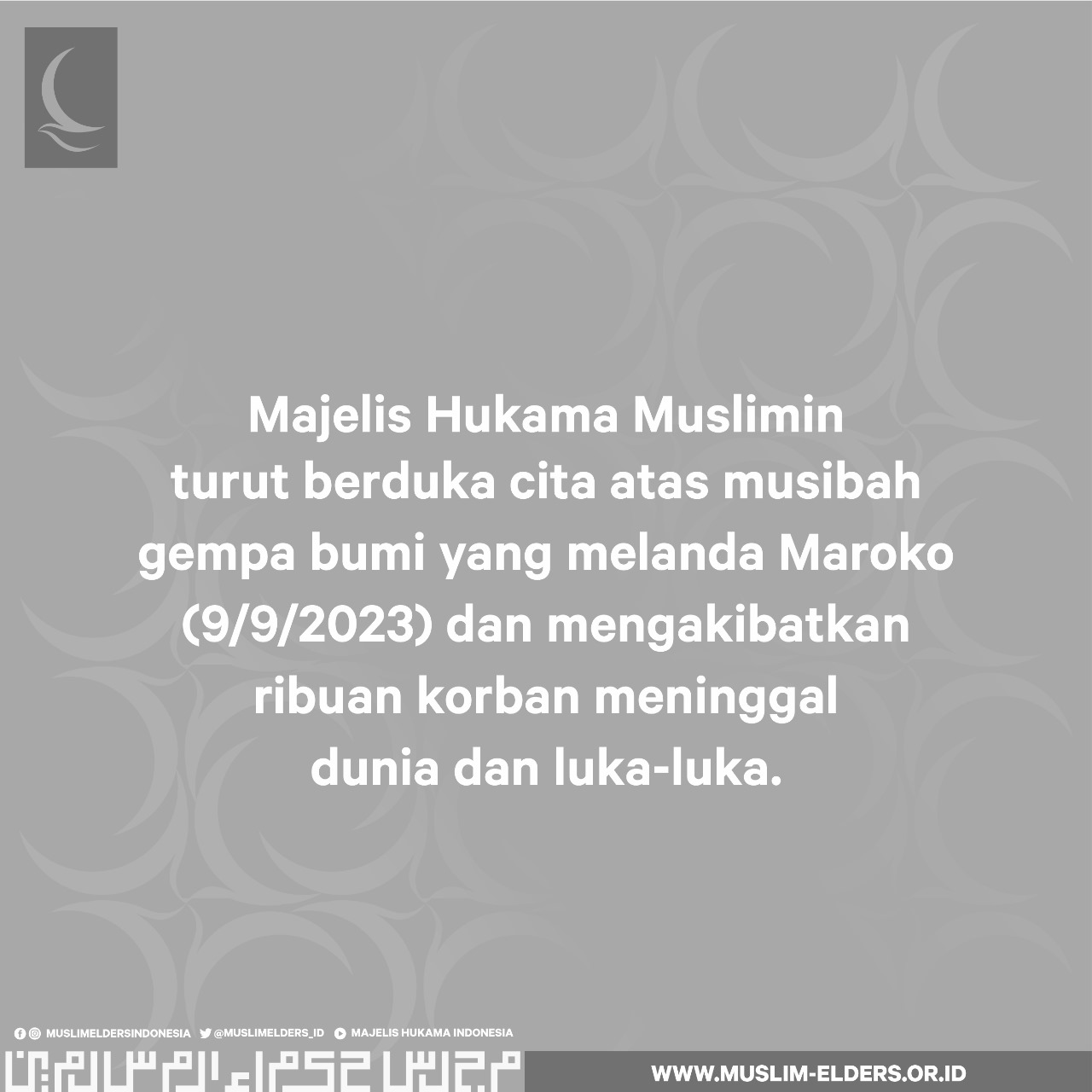 Baca selanjutnya>Majelis Hukama Muslimin (MHM) yang dipimpin Grand Syekh Al-Azhar Prof. Dr. Ahmed Al-Tayeb menyatakan solidaritasnya terhadap korban gempa bumi yang melanda sejumlah kota di Maroko. Ribuan orang dilaporkan meninggal dan terluka akibat gempa bumi yang terjadi hari ini, Sabtu (9/9/2023).