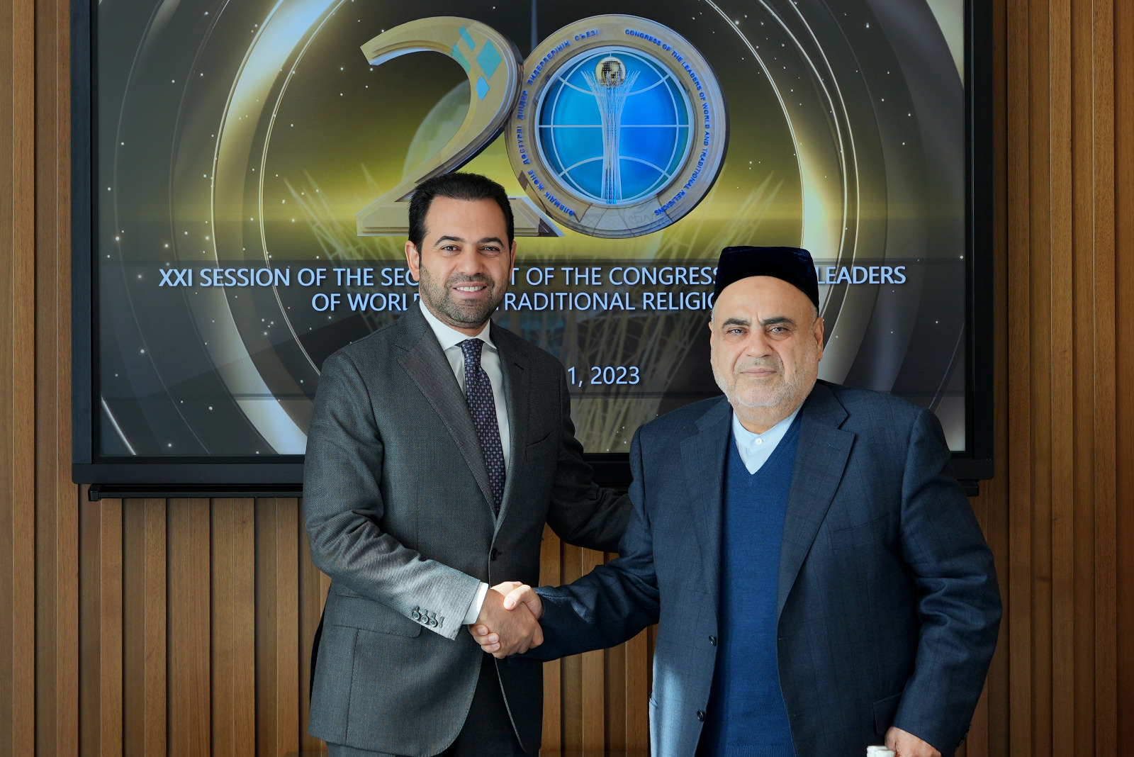 Menteri Kehakiman Kazakhstan, Azamat Yeskarayev bertemu Sekjen Majelis Hukama Muslimin (MHM) Konselor Mohamed Abdelsalam di Astana, Jumat (13/10/2023). Pertemuan kedua pihak ini menekankan pentingnya keadilan dalam membangun perdamaian. Dibahas juga peran lembaga peradilan dalam memajukan persaudaraan dan hidup berdampingan.