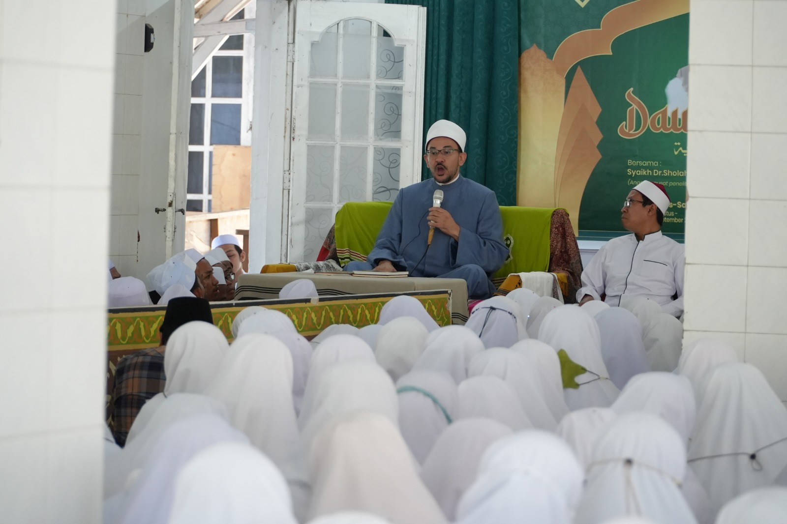 Ulama Al-Azhar Dr. Salahuddin El-Shami dalam kajian Ba’da Subuh di Masjid At-Taqwa Pancor, Kamis (31/8/2023) menjelaskan tentang salat dan salidaritaas umat. Kajian ini dihadiri oleh ratusan santri dan masyarakat setempat yang memadati masjid.