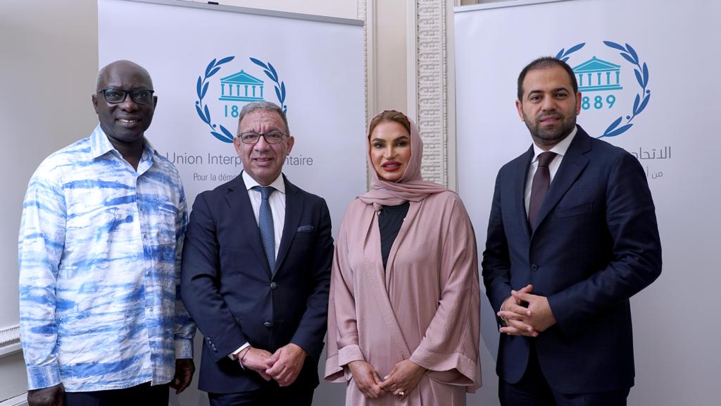 Sekretaris Jenderal (Sekjen) Majelis Hukama Muslimin (MHM) Konselor Mohamed Abdelsalam dan Direktur Jenderal Kementerian Toleransi dan Koeksistensi UEA, Afra Al Sabri, bertemu dengan the Presiden of the Inter-Parliamentary Union, Duarte Pacheco.