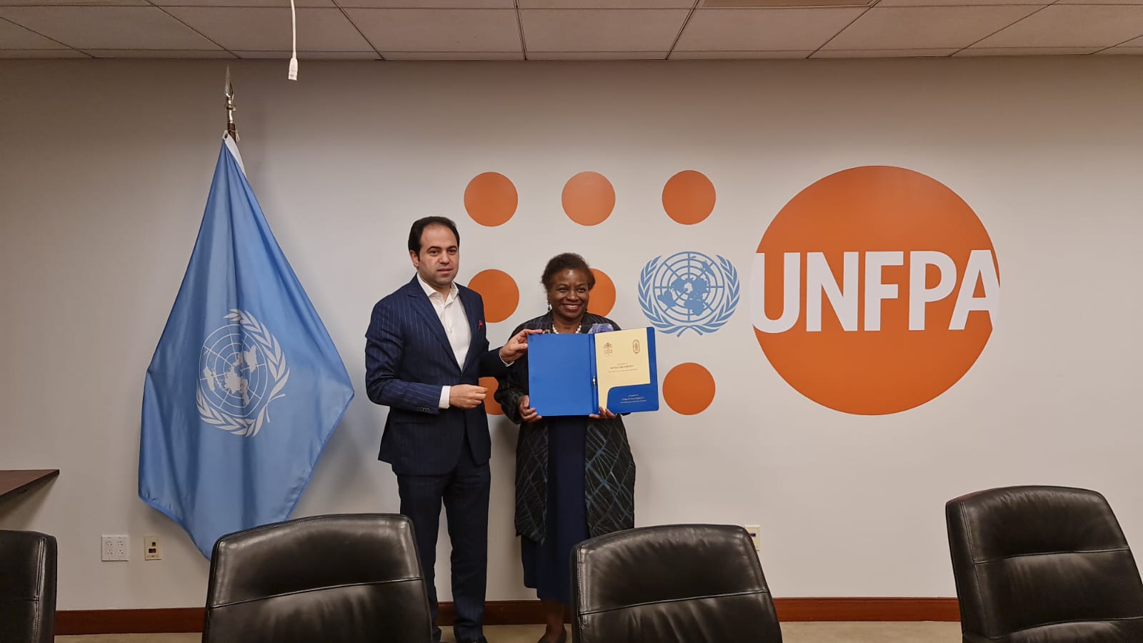 Sekretaris Jenderal Majelis Hukama Muslimin (MHM) Konselor Mohamed Abdel Salam bertemu Direktur Eksekutif Dana Kependudukan (United Nations Fund for Population Activities/UNFPA) Perserikatan Bangsa-Bangsa (PBB) Natalia Kanem di Amerika Serikat, Sabtu (24/9/2022). Pertemuan ini membahas upaya memerangi kekerasan terhadap perempuan dan anak-anak