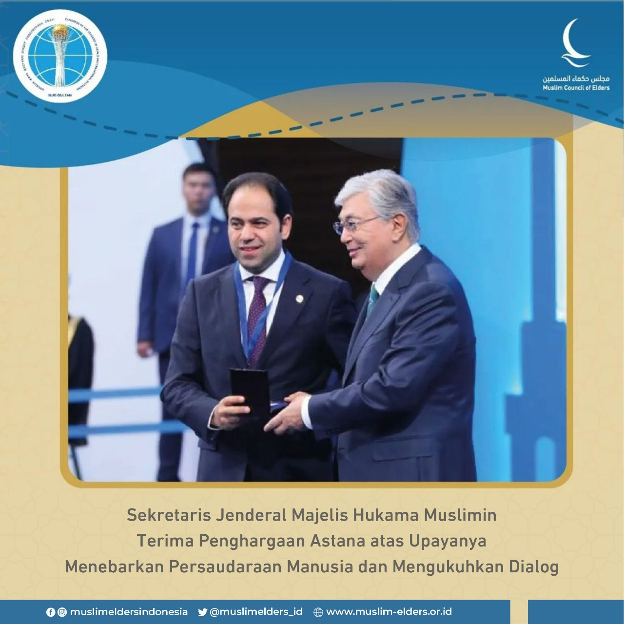 Presiden Kazakhstan Kassym-Jomart Tokayev memberikan penghargaan Astana kepada Sekretaris Jenderal Majelis Hukama Muslimin (MHM) Mohamed Abdel Salam. Penghargaan itu diberikan kepada Abdel Salam atas upayanya yang gigih mempromosikan persaudaraan manusia dan dialog antaragama.