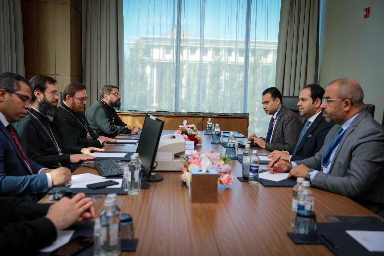 Sekretaris Jenderal Majelis Hukama Muslimin (MHM) Mohamed Abdel Salam bertemu dengan Ketua Delegasi Gereja Ortodoks Rusia Uskup Anthony Sevryuk. Pertemuan berlangsung di sela-sela kehadiran mereka pada Kongres ke-7 Pemuka Agama Dunia yang berlangsung di ibukota Kazakhstan, Nursultan, 14 – 15 September 2022.