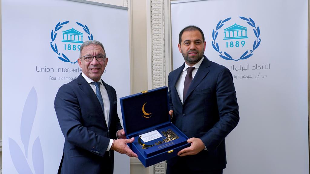Sekretaris Jenderal (Sekjen) Majelis Hukama Muslimin (MHM) Konselor Mohamed Abdelsalam dan Direktur Jenderal Kementerian Toleransi dan Koeksistensi UEA, Afra Al Sabri, bertemu dengan the Presiden of the Inter-Parliamentary Union, Duarte Pacheco.