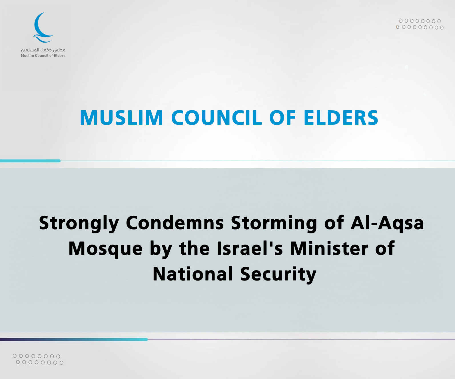 Baca selanjutnya>Majelis Hukama Muslimin (MHM), di bawah kepemimpinan Grand Syekh Al Azhar, Imam Akbar Dr. Ahmed Al-Tayeb, mengecam keras penyerbuan Masjid Al-Aqsa oleh Menteri Keamanan Nasional Israel, dengan dukungan pasukan pendudukan. MHM menegaskan bahwa tindakan ini merupakan pelanggaran mencolok terhadap hukum internasional dan provokasi terang-terangan terhadap perasaan umat Muslim di seluruh dunia.