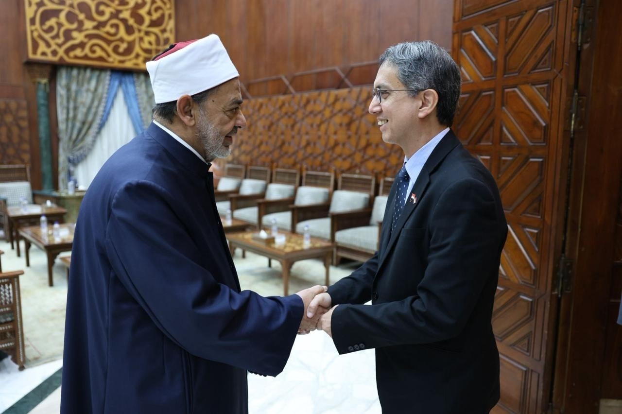 Grand Syekh Al-Azhar yang juga Ketua Majelis Hukama Muslimin (MHM), Imam Akbar Dr. Ahmed Al-Tayeb, Minggu (2/11/2025), menerima Dr. Muhammad Faishal Ibrahim, Menteri Urusan Muslim Singapura dan Anggota Parlemen. Hadir mendampingi, Duta Besar Dominic Goh, Duta Besar Singapura untuk Mesir. Pertemuan ini membahas penguatan hubungan ilmiah dan dakwah bersama.