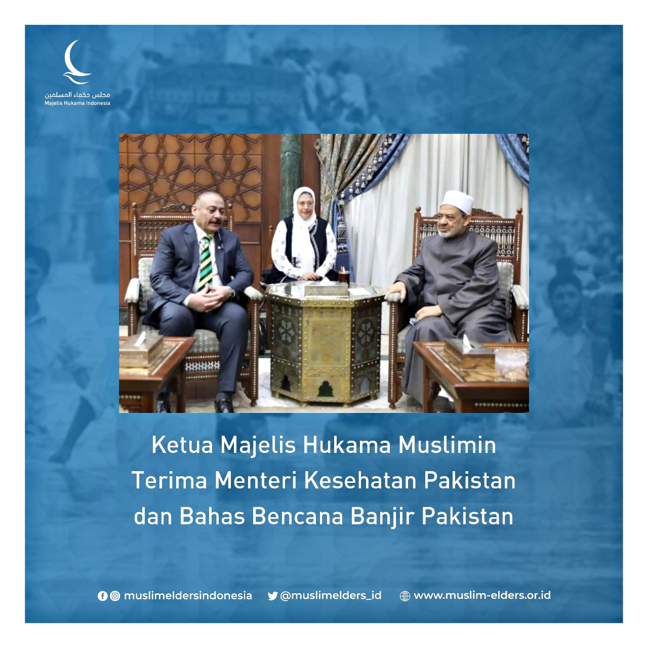 Baca selanjutnya>Ketua Majelis Hukama Muslimin (MHM) Prof. Dr. Ahmad Al-Tayeb, Syekh Al-Azhar, menerima kunjungan Menteri Kesehatan Pakistan Abdul Qadir Patel, Rabu, 12 Oktober 2022, di kantor Syekh Al-Azhar, Kairo. Pertemuan kedua tokoh itu membicarakan perkembangan bencana banjir yang menimpa Pakistan belum lama ini.