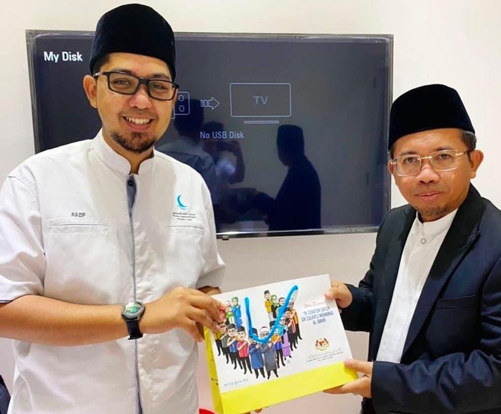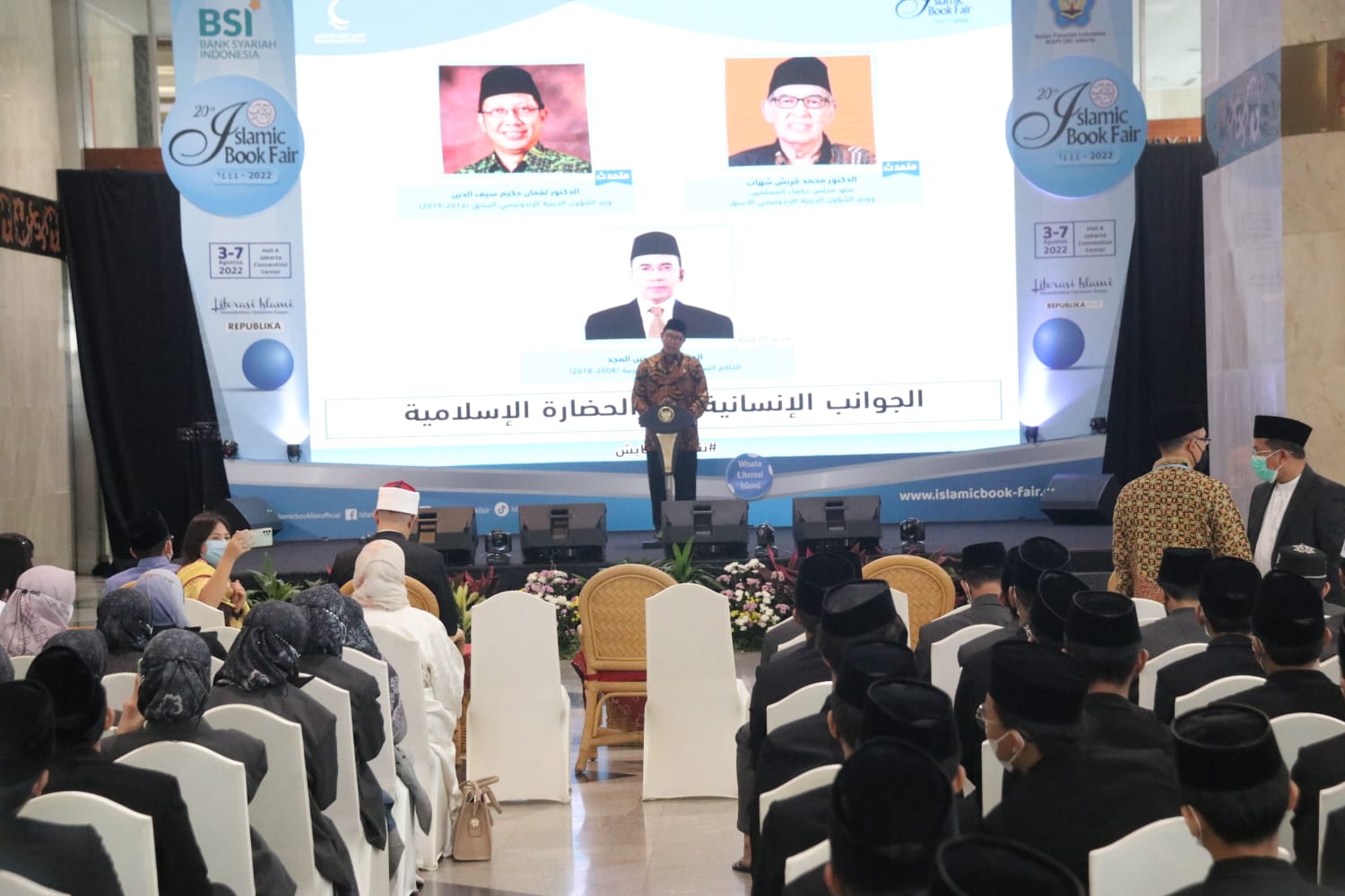 Baca selanjutnya>Direktur Majelis Hukama Muslimin (MHM) cabang Indonesia Muchlis M. Hanafi menerima kunjungan Direktur MHM cabang Malaysia Razif Muhammad Fuad, Jumat (5/8/2022). Pertemuan kedua pihak ini berlangsung di stan MHM pada Islamic Book Fair tahun 2022.