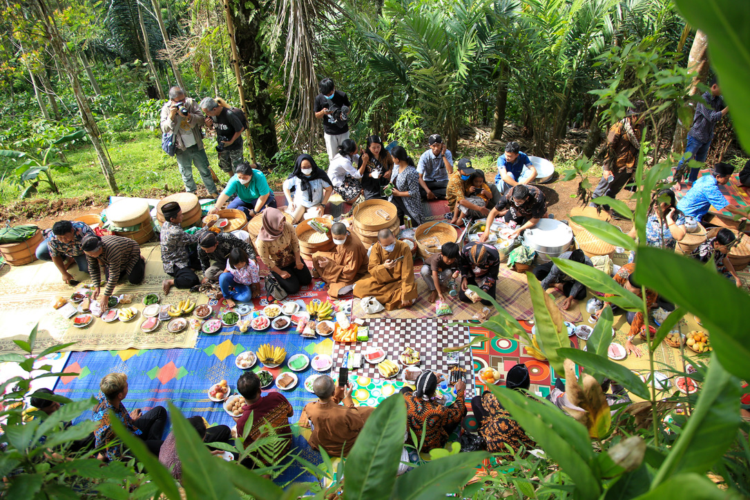 Baca selanjutnya>Nyadran digelar oleh dua dusun di Desa Getas. Dusun Krecek yang mayoritas beragama Buddha, dan Dusun Gletuk yang mayoritas muslim. Ada juga warga dusun yang beragama Kristen. Meski beragam, mereka diikat oleh rasa persaudaraan. Sebab, mereka merasa memiliki leluhur yang sama yang dimakamkan di kawasan Getas ini. Untuk itulah mereka mentradisikan Nyadran.