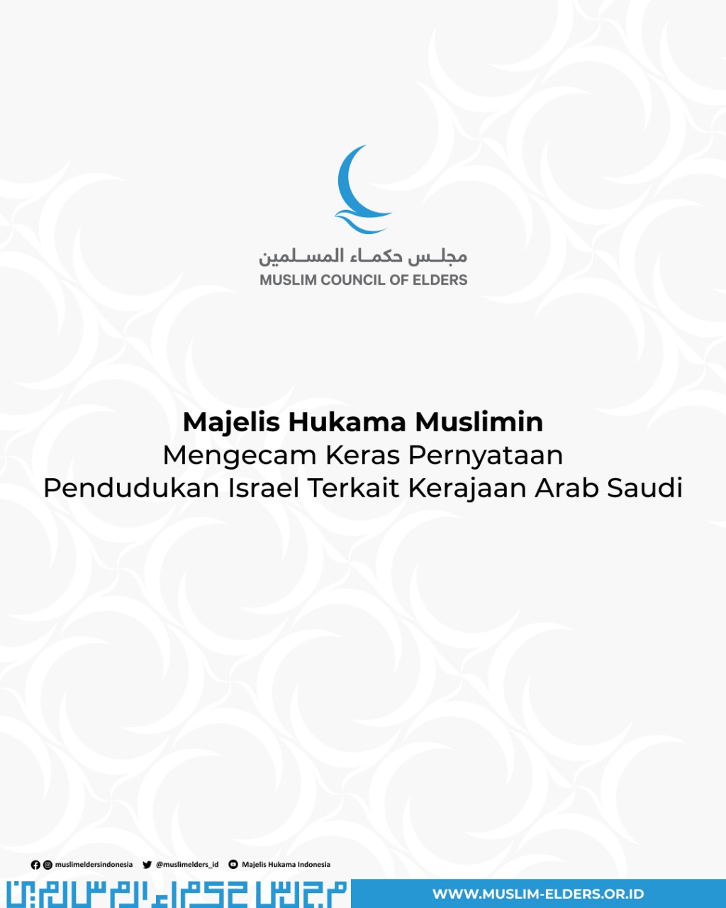 Baca selanjutnya>Majelis Hukama Muslimin (MHM), di bawah kepemimpinan Grand Syekh Al Azhar, Imam Akbar Prof. Dr. Ahmed Al-Tayeb, mengecam keras pernyataan terbaru pihak pendudukan Israel yang menghasut Kerajaan Arab Saudi dan menyerukan pembentukan negara Palestina di wilayah Saudi. Pernyataan-pernyataan ini merupakan penghinaan langsung terhadap kedaulatan Saudi dan pelanggaran yang jelas terhadap hukum dan konvensi internasional.