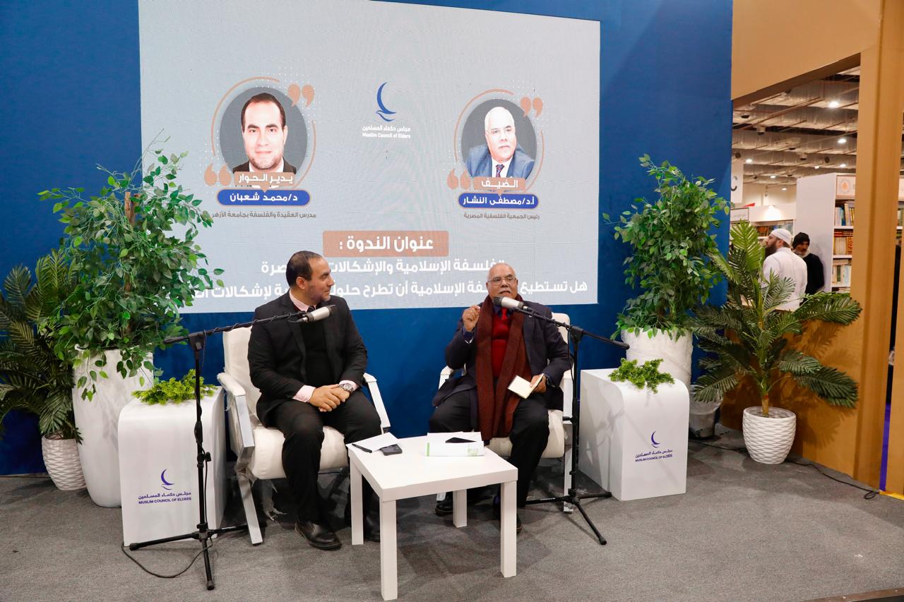 Baca selanjutnya>Stan Majelis Hukama Muslimin (MHM) di Pameran Buku Internasional Kairo menyelenggarakan seminar budaya kedua belas, berjudul “Filsafat Islam dan Tantangan Kontemporer: Dapatkah Filsafat Islam Menawarkan Solusi yang Layak untuk Masalah Saat Ini?”, Jumat (31/1/2025). Seminar tersebut menghadirkan narasumber, Prof. Mustafa El-Nashar, Presiden Masyarakat Filsafat Mesir. Selaku moderator, Dr. Mohamed Shaaban, Dosen Teologi dan Filsafat di Universitas Al-Azhar.