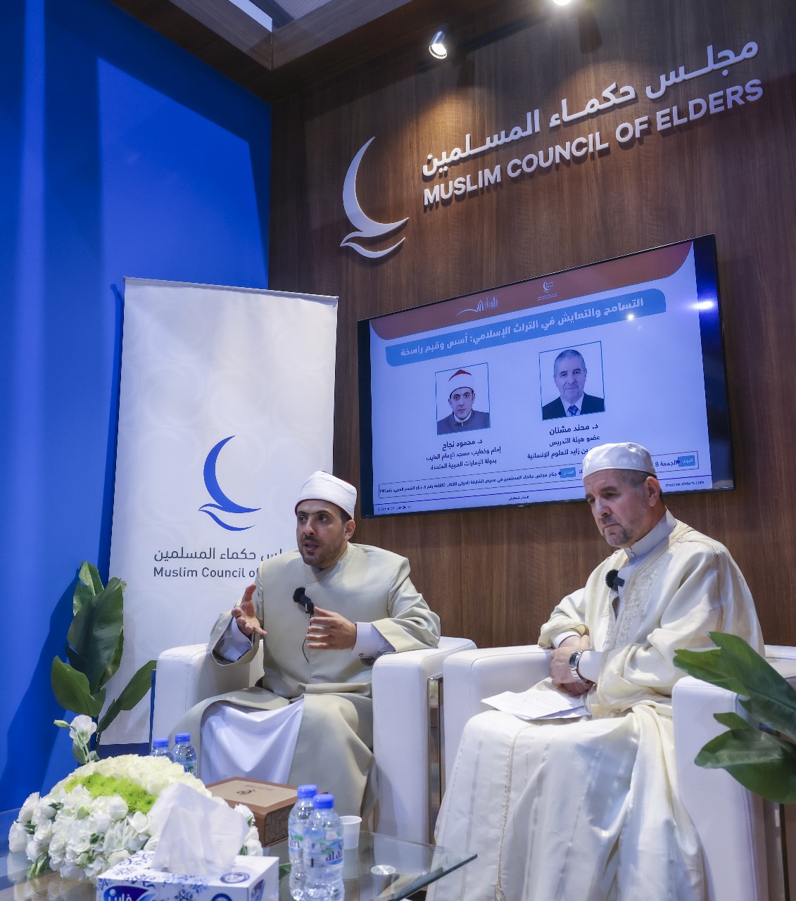 Baca selanjutnya>Paviliun Majelis Hukama Muslimin (MHM) oada Pameran Buku Internasional Sharjah ke-43 mengadakan seminar berjudul "Toleransi dan Hidup Berdampingan dalam Warisan Islam: Fondasi dan Nilai-Nilai yang Abadi", Sabtu (9/11/2024). Hadir sebagai narasumber, Dr. Mahmoud Najah (Imam Masjid Ahmed El-Tayeb di Rumah Keluarga Abraham, Abu Dhabi) dan Dr. Mohand Mechenene (Universitas Humaniora Mohamed bin Zayed).
