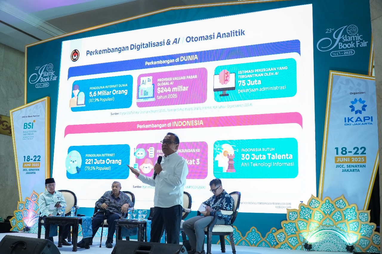 Majelis Hukama Muslimin (MHM) pada hari pertama Islamic Book Fair (IBF) 2025 menggelar diskusi menarik tentang Artificial Intelligence. Diskusi berlangsung di panggung utama IBF yang dipenuhi para pengunjung yang matoritas kalangan pemuda.